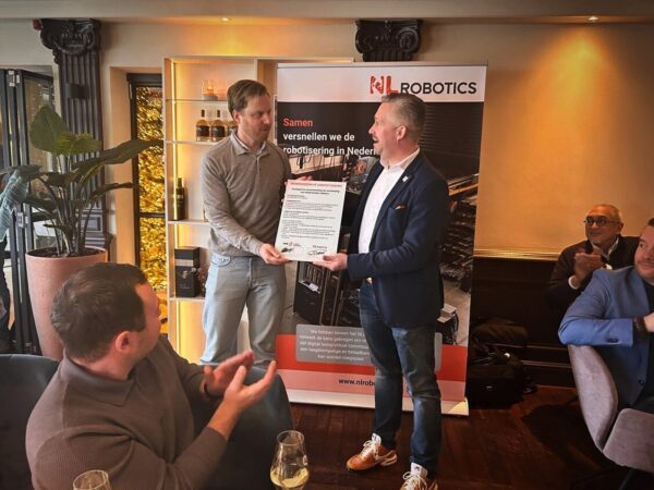 De overeenkomst werd ondertekend door Willem Wensing, directeur Externe Betrekkingen & Branches bij FME, en Thijs Dorssers, directeur van NLrobotics. Samen willen de organisaties de versnippering binnen het Nederlandse roboticalandschap tegengaan en toewerken naar een breed gedragen Nationale Roboticastrategie.