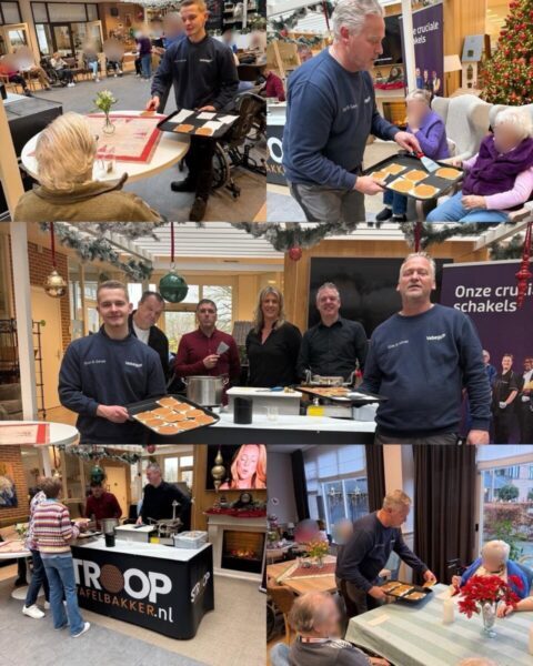 Stefan vertelt: “Samen met Bart de Bakker, die ter plekke heerlijke verse stroopwafels maakte, hebben onze glazenwassers deze warme lekkernijen uitgedeeld aan de bewoners.