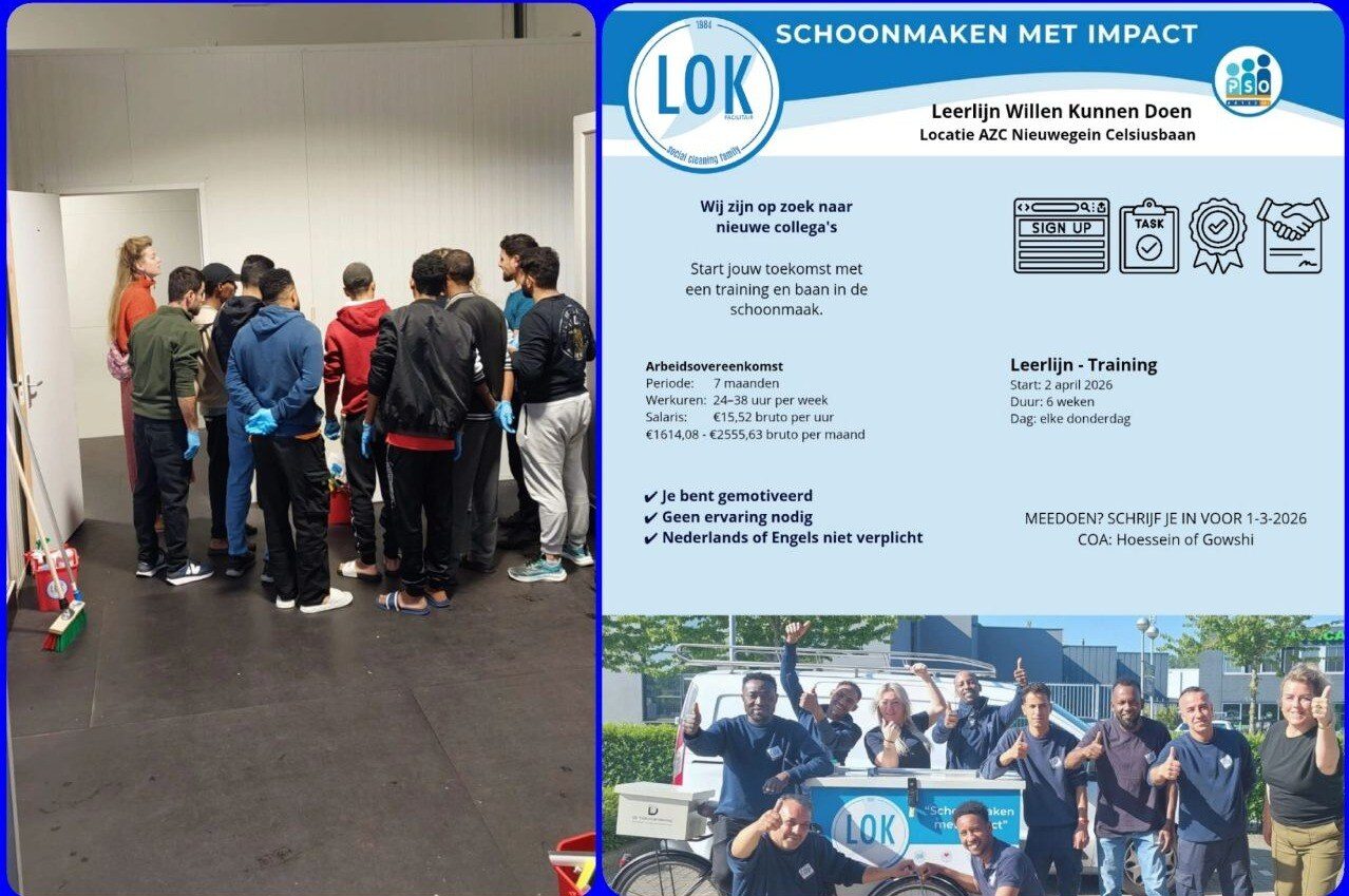 In april start bij het azc in Nieuwegein de leerlijn ‘Willen Kunnen Doen’ van LOK Facilitair In totaal hebben 23 bewoners zich aangemeld voor het traject dat hen voorbereidt op werk in de schoonmaak.