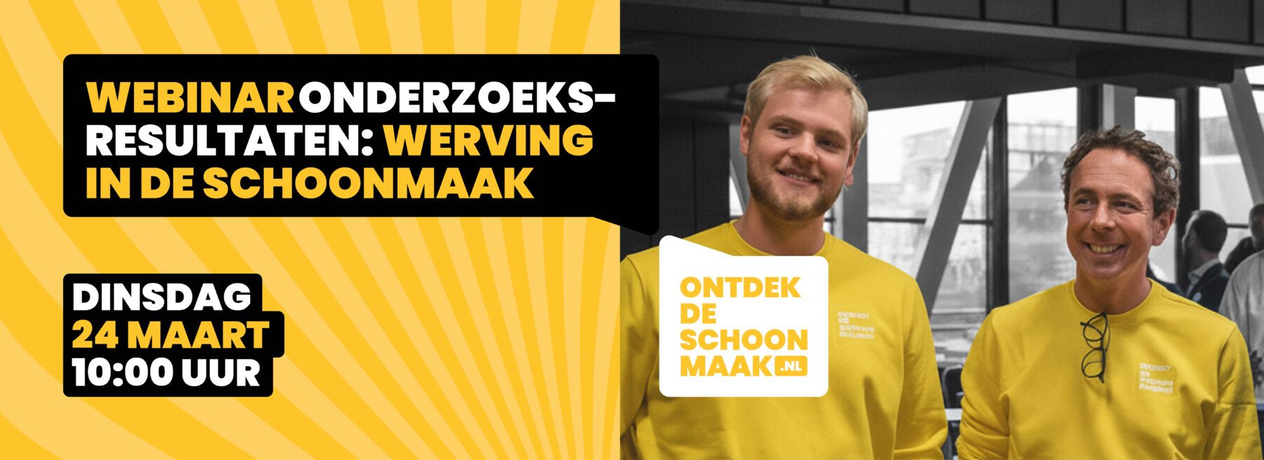Hoe werft de schoonmaaksector nieuwe medewerkers? Welke kanalen werken het best en waar lopen organisaties tegenaan? Op dinsdag 24 maart om 10.00 uur delen Floris Verkroost en Michiel de Boer de resultaten van een nieuw onderzoek naar werving in de schoonmaak tijdens een gratis webinar.