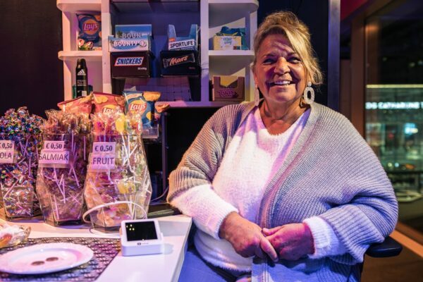 Ze kwam ooit bij Tivoli terecht dankzij een advertentie in het Stadsblad. “Mijn schoonzussie zei: ‘Niks voor jou, mop?’ Ik wist niet eens wat Tivoli was.” Tot ze kwam solliciteren, de lange gang in liep en meteen haar jeugd terugzag: “Mijn oma woonde aan ’t grachie. Als meissie van vijf rende ik hier al rond. Dat vergeet je niet.”