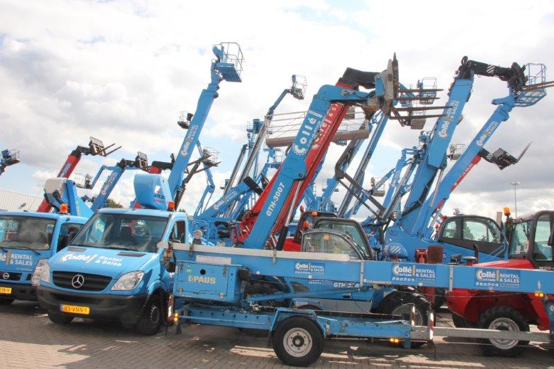 Ook imposant. Collé Rental & Sales realiseerde in 2014 een omzet van € 100.000.000, onderverdeeld in 50% verhuur en 50% verkoop. Er maken zo’n 2750 zelfaangedreven hoogwerkers, zoals telescoop, schaar en knik) van het machinepark uit. Daarnaast zijn er 100 autohoogwerkers, 300 verreikers, 175 roterende verreikers en heeft Collé 45 eigen vrachtwagens dagelijks op de weg, met dubbele bezetting.