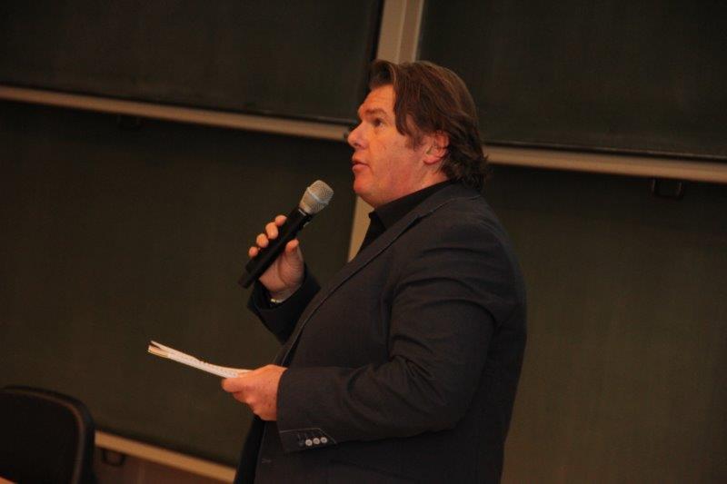 Na wetten, richtlijnen, beleids- en vraagstukken, praktijk en theorie, plaatste Boyd Berends zich aan de ‘zijlijn’ van het congres en liet ‘enig geroep’ van zich horen. Dat hygiëne en humor hand in hand kunnen gaan, bewees hij als vanzelfsprekend. De geregistreerd specialist Veterinaire Volksgezondheid aan de faculteit Diergeneeskunde legde een hygiënisch verband tussen de aanwezige congresdeelnemers en de populatie koeien, varkens, kippen, parkieten en ander gedierten. Op heldere wijze legde Berends uit dat hetgeen in de veehouderij speelt zijn weerslag heeft op de humane populatie. Dat leverde hem de tegeltjeswijsheid op van dit FMG-congres op, concludeerde dagvoorzitter en cabaretier Marcel Stevens: “De wereld is één grote orale kringloop.”