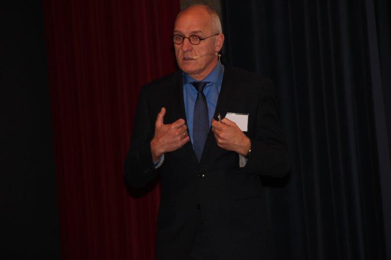 “Een dirigent heeft maar één taak, namelijk om van moeten willen te maken. Dat zijn drie ‘werk’woorden op een rij voor het management. Als dat lukt, wordt het van degene die de leiding geeft zelf en werkt het motiverend”, stelt Hans Boom. De professioneel dirigent zorgt voor een klinkende en bewegelijke afsluiting van het FMG-symposium. “Uit mij komt geen geluid, dus moet ik erop vertrouwen dat mensen op mijn aanwijzingen doen en uitvoeren.” Dat het om een gezamenlijk resultaat van een orkest gaat, weet Boom ook. “Het gaat om doel- en taakgericht zijn, want dat betekent dat je vooruit kijkt. Het gaat om motiveren. Je motiveert mensen niet door te straffen, bewaken en afrekenen. Je moet anticiperen, acteren en reageren.” Boom tot slot: “Welke invloed heb ik op mijn medewerkers? Vraag dat jezelf af. Laat mensen groeien. Wordt het Vivaldi of Free jazz?  Aan u de keuze voor bevlogen- en verbondenheid.”