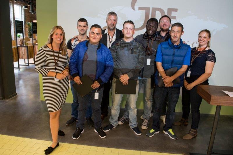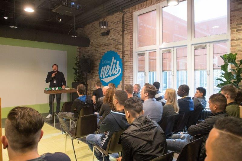 “Kopje koffie glazenwasser?, wie herinnert zich de reclame uit de tachtiger jaren niet?”, vraagt Ian Smeyers. In de volle zaal van koffiegigant Jacobs Douwe Egberts (JDE) zijn dat er niet zo heel veel. Immers, Stichting Nelis zet zich in om jongeren, die werkloos zijn of anderszins een afstand tot de arbeidsmarkt hebben, aan een baan te helpen. Toch koos de stichting er bewust voor om juist bij en met JDE in Utrecht een grote diploma-uitreiking te organiseren: “Werkgever Douwe Egberts is een sociale ondernemer. Ze hebben oog voor de mensen”, weet Smeyers.