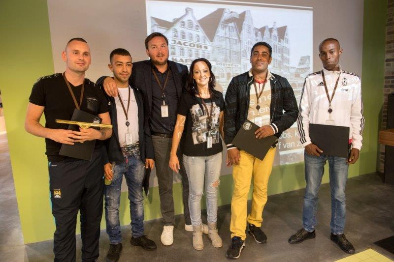 40 diploma’s, 4 gemeenten, 62% diplomascore en 69% aan het werk: op 29 augustus was Jacobs Douwe Egberts gastheer van de unieke, grote en grootse diploma-uitreiking aan 40 glazenwassers. Via het werkgelegenheidsproject Op de Ladder naar Succes doorliepen zij een leer-/werktraject bij een van de vier aanwezige gemeenten: Breda, Den Haag Tilburg en Utrecht. “Een diploma geeft je toekomst; je kunt er heel wat mee bereiken”, enthousiasmeert Ian Smeyers, bedenker, oprichter en docent van Stichting Nelis.
