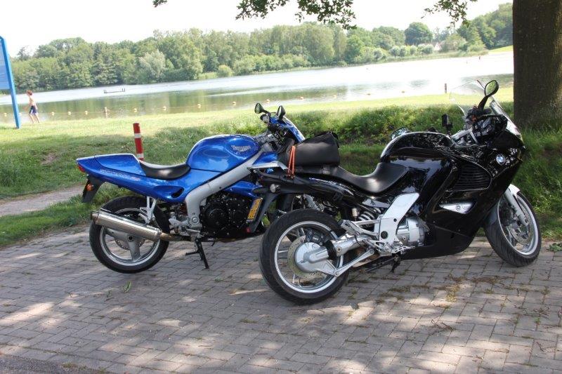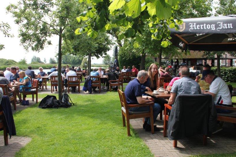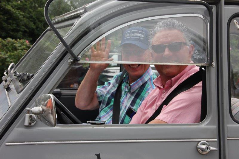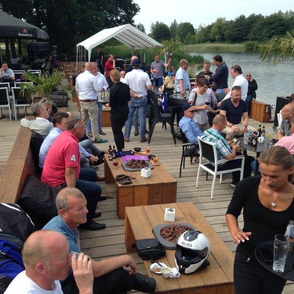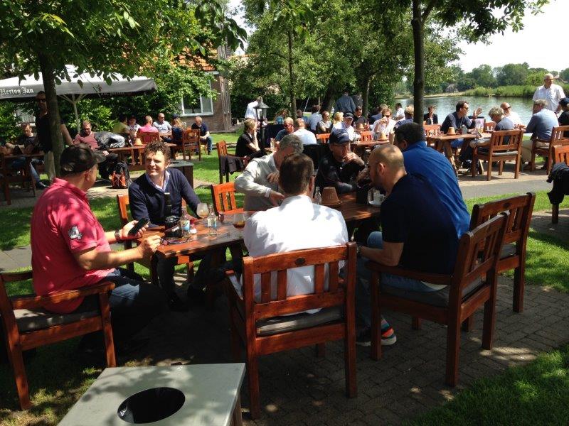 Greg Klaver legt uit: “Het evenement heet de Schoonmaaktourdag; een tourdag voor de schoonmaak. In de organisatie mag een schoonmaakbedrijf zeker niet ontbreken. Dus hebben wij ons hierbij graag aangesloten. Bovendien vind ik het heerlijk om open te rijden en te toeren.” Dat open rijden bleek ditmaal mogelijk, want het was maar liefst 160 km perfect cabrioweer. Volop genieten dus. De acht motorrijders zoefden over droge wegen en genoten van de aangename temperatuur, en de berijders van de 2CV’s konden hun dakje naar achteren oprollen. En als je onder zulke zomerse omstandigheden op zo’n bijzondere plek als de Tuin van Geertien in Muggenbeet terecht komt om daar de lunch te genieten, dan is dat ook écht genieten. Tot slot van de tourdag trof het rijderskoppel elkaar aan de Wijthemerplas, waar het een geweldig treffen was voor fans van motor-, auto- én watersport.