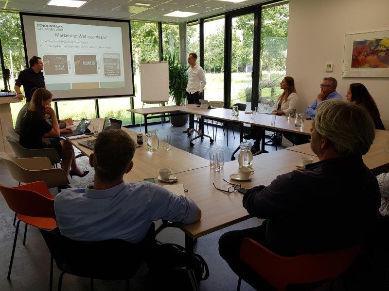 Nadat Schoonmaak Vakdagen marketingverantwoordelijke Nick Hoekman de aanwezigen tekst en uitleg gaf over de huidige bereikcijfers van het vakevenement, de uitgevoerde marketingacties in samenwerking met Clean Totaal, partners en op social media, werd de groep gesplitst om te brainen over verschillende onderwerpen. Maar niet voordat de hashtag is vastgelegd. Via Facebook, Twitter en Linkedin zijn alle berichten van het vakevenement snel te raadplegen via #SMVD19!