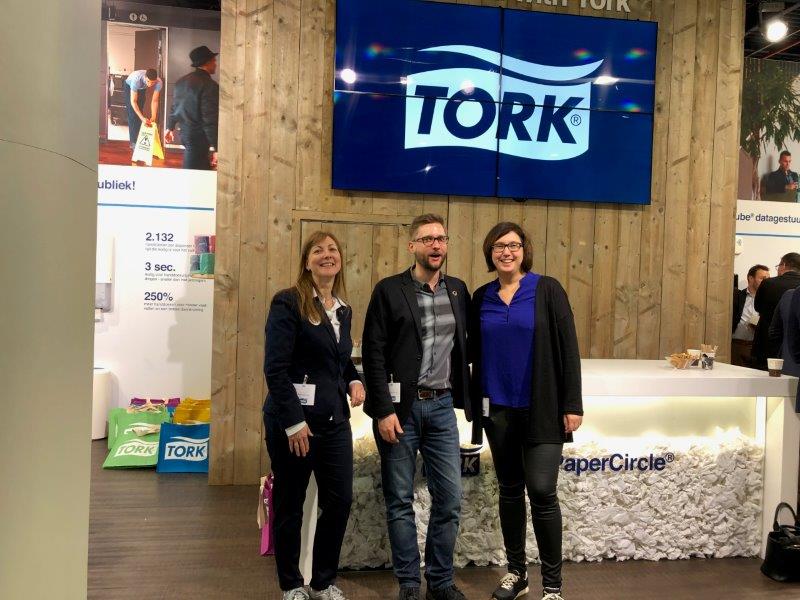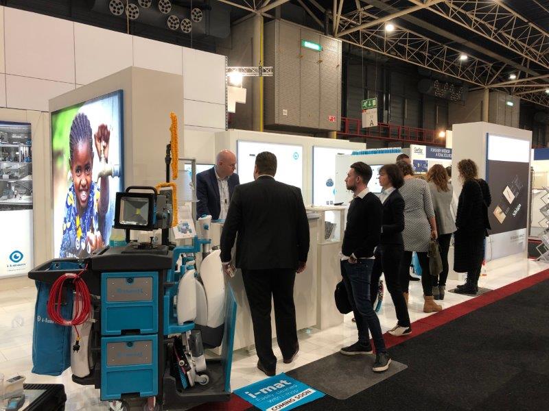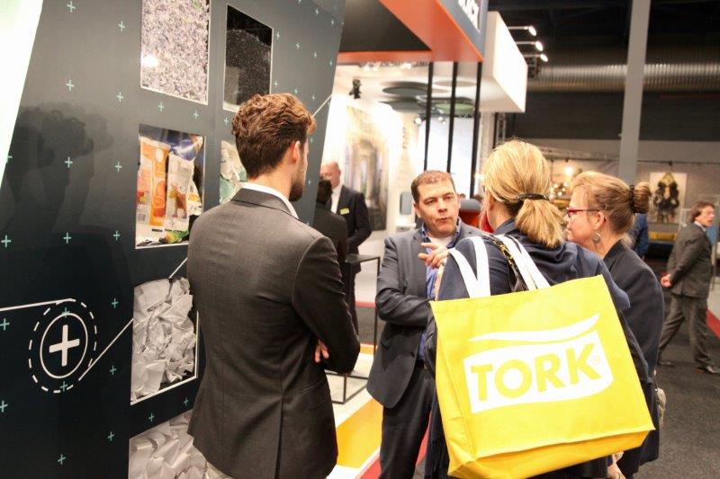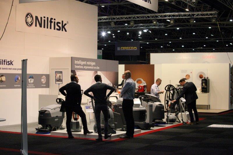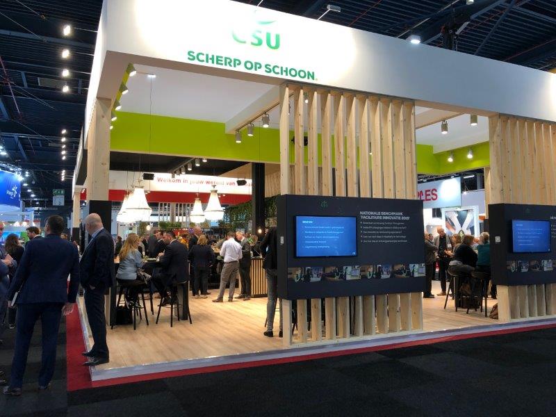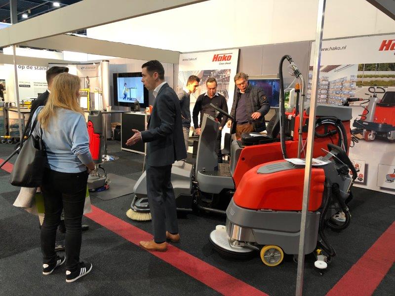 Demo’s van reinigingsmachines als de Fybots (Consensus Services/Piecom Cleaning Products), i-mop (i-team Global), batterij-stofzuigers (Nilfisk), afvalzuiger (BOMA), schrobzuigmachines (Hako/Exclusiva) en Airblade wash & dry (Dyson) krijgen veel aandacht. Het Future Lab van Satino Black en de warme houten stand van Tork Essity met daarin recyclebare papieren handdoekjes verwerkt, springen er qua uitstraling direct uit. Zo ook de uitnodigende stand van schoonmaakbedrijf CSU en cateraar Vermaat met groen en fijne zitjes voor goede gesprekken. Vebego (Alpheios, Fortron, Hago) organiseert op haar stand eigen kennissessies over hun inzet (circulair werken) op de schoonmaakmarkt. Exposanten als Burgman, CWS, King, Lyreco en Toletto tonen hun producten op het gebied van sanitaire hygiëne en inrichting, maar waren vooral in voor een gesprek met de bezoekers over hun wensen en verwachtingen. TH&P trakteerde iedere bezoeker op een happy smile en vlogs over hoe een toetsenbord goed schoon te maken.